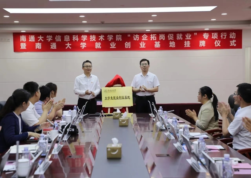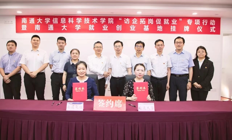 为深化校企合作,推动毕业生高质量充分就业, 6月1日下午,校党委常委、副校长施佺带队赴中国电信南通分公司开展“访企拓岗促就业”专项行动。中国电信南通分公司党委委员、副总经理俞冬辉接待了施佺一行,并共同为南通大学大学生就业创业基地揭牌。