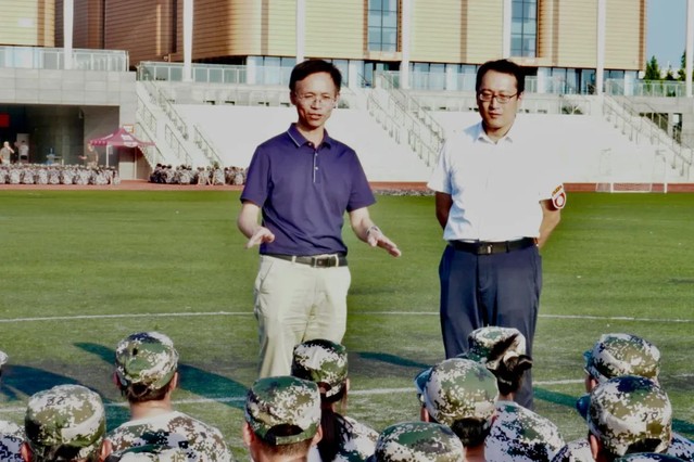 周平向教官们表达了诚挚谢意,感谢他们的的勤劳付出;向参训新生表示慰问和鼓励,为正刻苦训练的同学们加油打气。他强调军训不仅是大学生涯的必修篇章,更是磨砺意志、锻造体魄的关键熔炉,亦是人生旅途中一段独特且难忘的历练。并希望同学们在后续训练中,遵循教官指令与军训部署,严以律己,勤加锻炼,持之以恒地锤炼坚韧不拔之志与毅力,以此铸就更为昂扬向上的精神风貌,积极应对未来学业与生活的挑战。