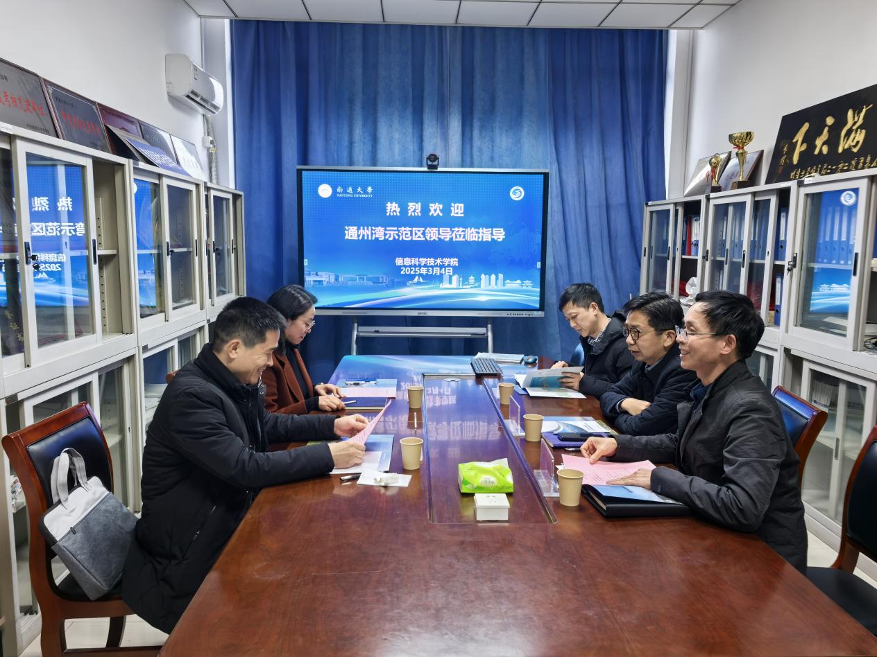 杨永杰代表学院对石星恺一行表示欢迎,并介绍了学院学科特色及发展现状。石星恺介绍了通州湾示范区的基本情况,他希望能够发挥南通大学信息与通信学科特色和科研平台,利用沿海开发区的地域和政策优势,进一步拓宽合作领域,尝试在产学研合作等多方面开展合作。