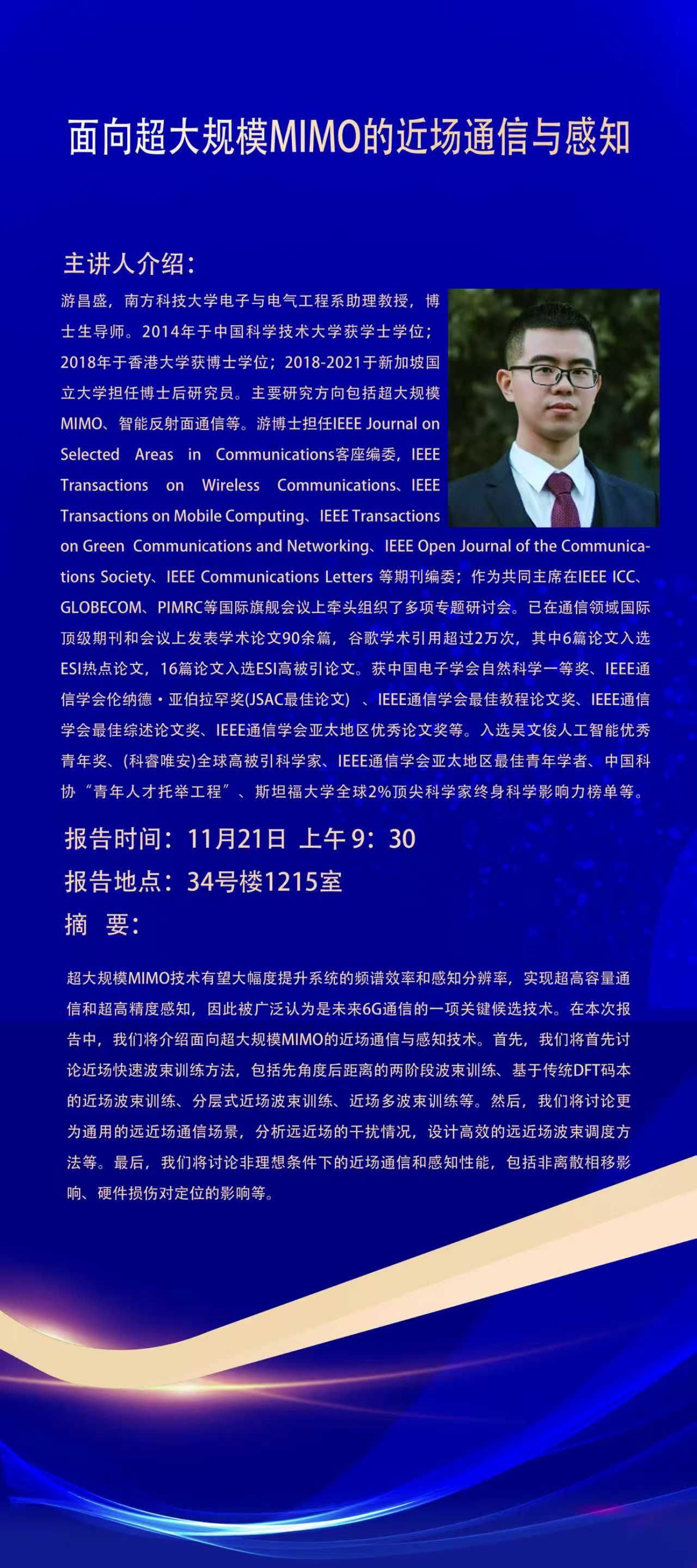 讲座预告:面向超大规模MIMO的近场通信与感知